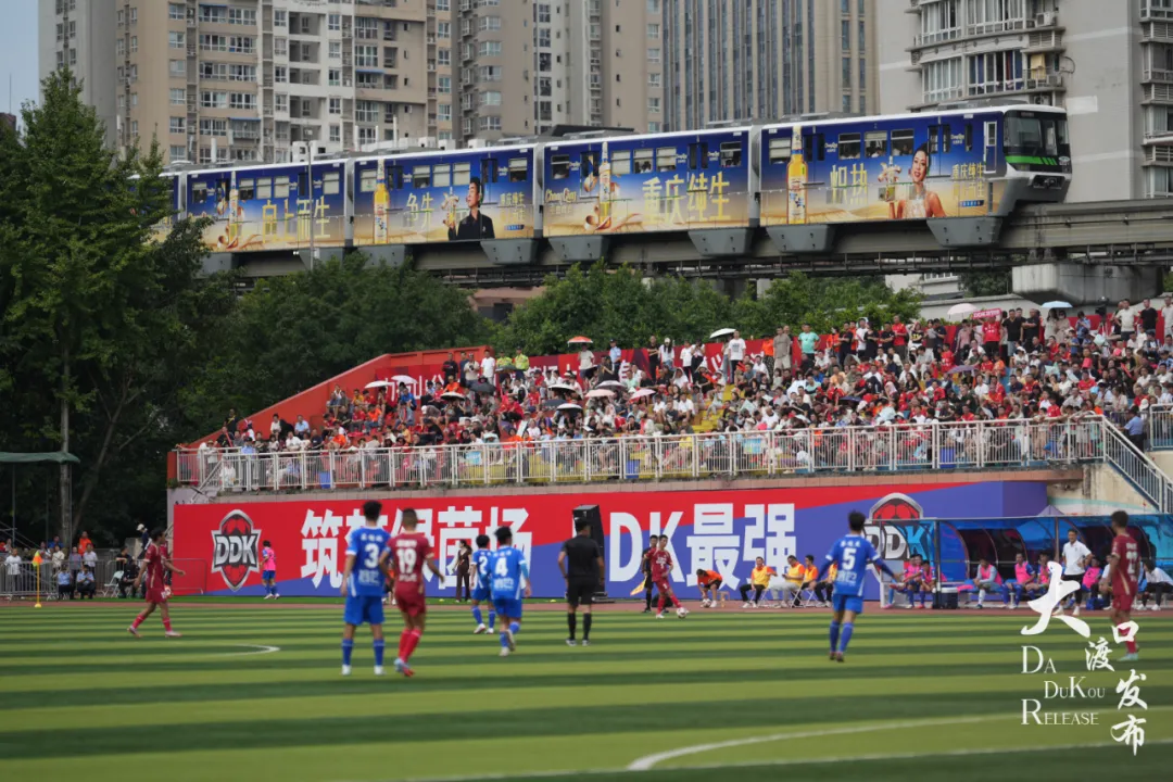 2025年9月21日,重慶市旅游學校體育場內,觀眾的吶喊聲掀翻全場——“渝超”聯賽大渡口首戰在此打響。大渡口馨田戰隊2:0戰勝江北信也科技隊取得“開門紅”。市民的運動熱情高漲,上萬名外地球迷通過直播了解大渡口的激情與活力;