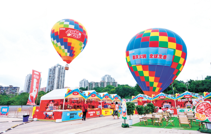 “快看!那個橙色的熱氣球要升起來啦!”10月1日,大濱路音樂營地的草坪上響起陣陣歡呼。隨著燃燒器噴出的火焰劃破秋日晴空,五彩斑斕的熱氣球在長江之畔緩緩升起,這便是重慶火鍋美食文化節潮辣熱氣球嘉年華的一幕。